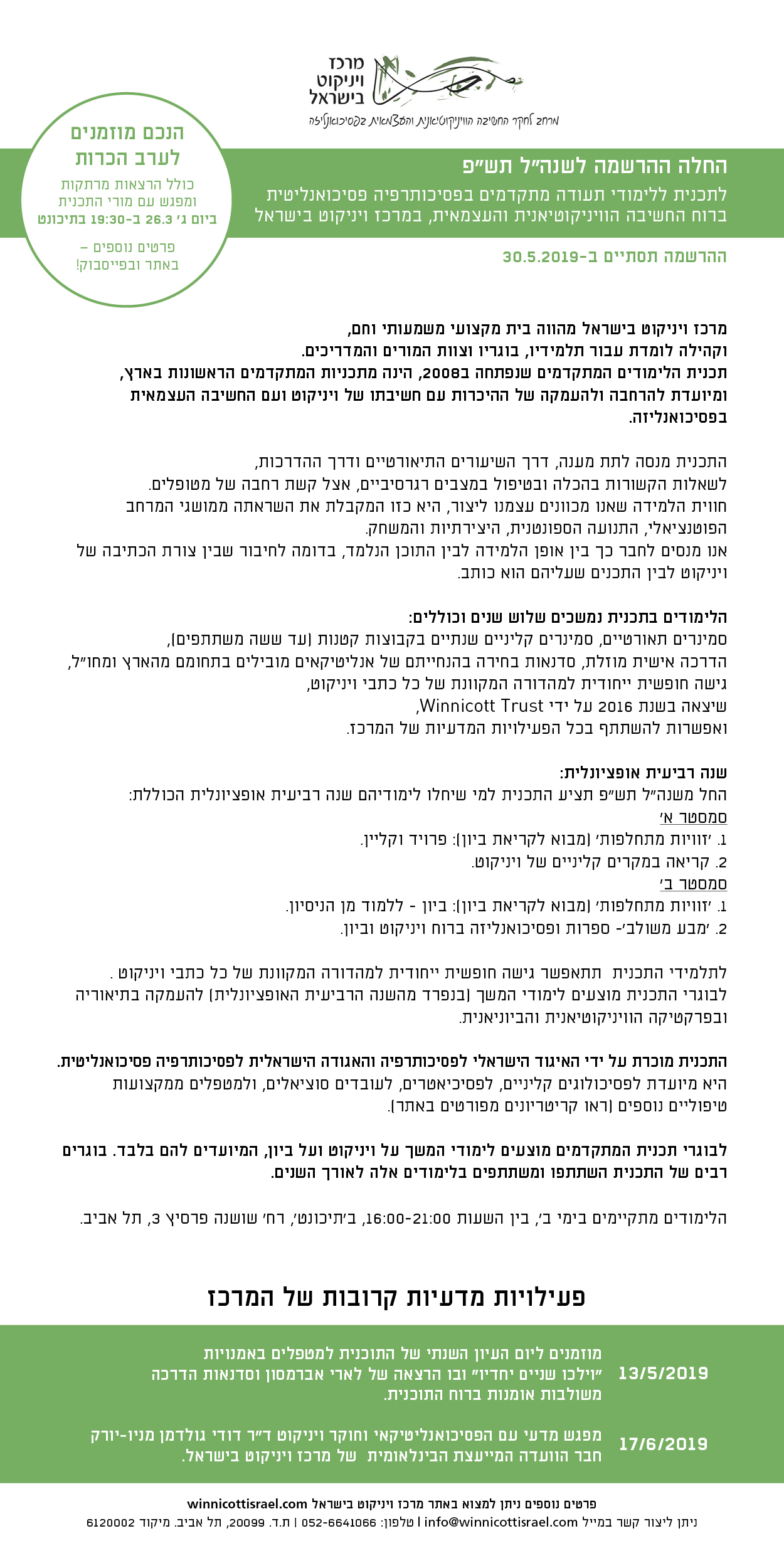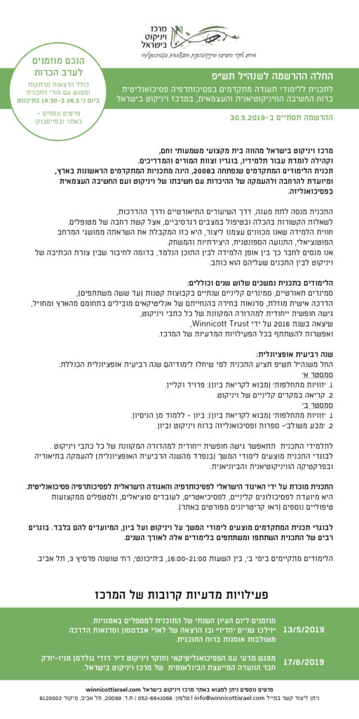 'מפת דרכים' – בי"ס לפסיכותרפיה